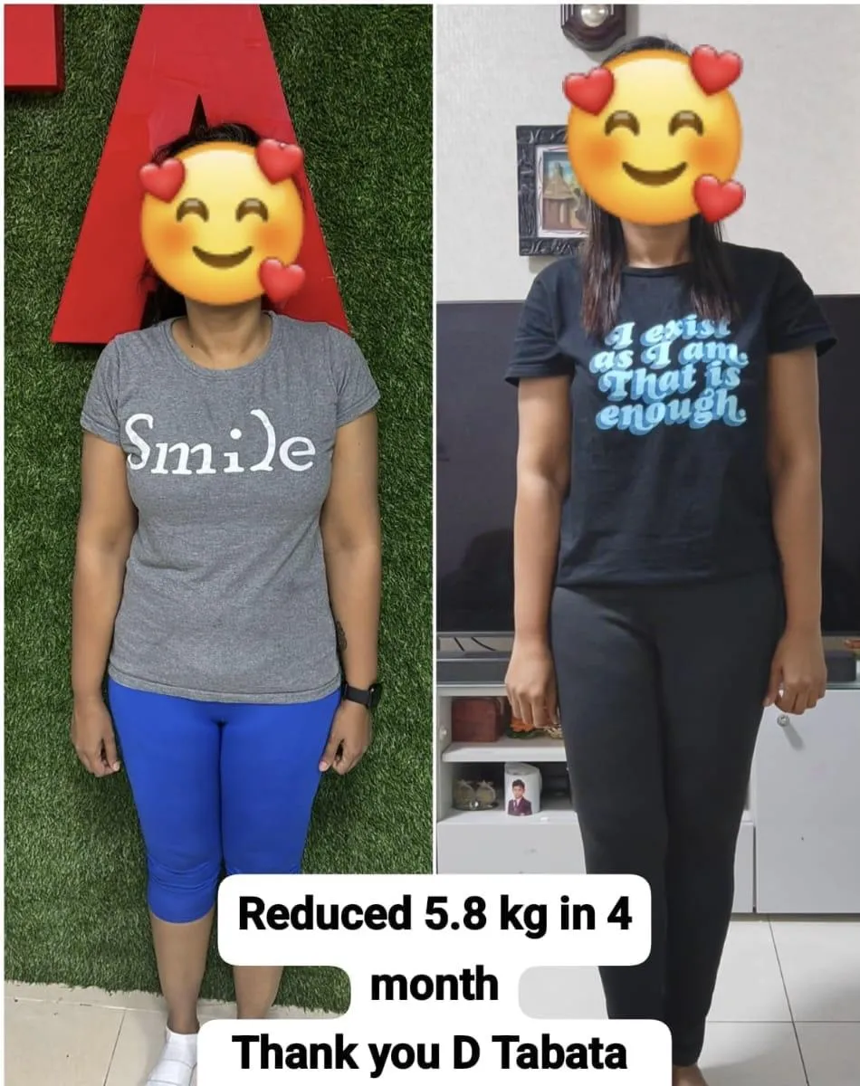 "Having a fantastic experience with D Tabata. I was join there by one week ago, but with in a week i can feel that by body was changing. Itz only due to tabata's workout and diet 😍 💪 Thank you ✌️" - Deepika Sandeep